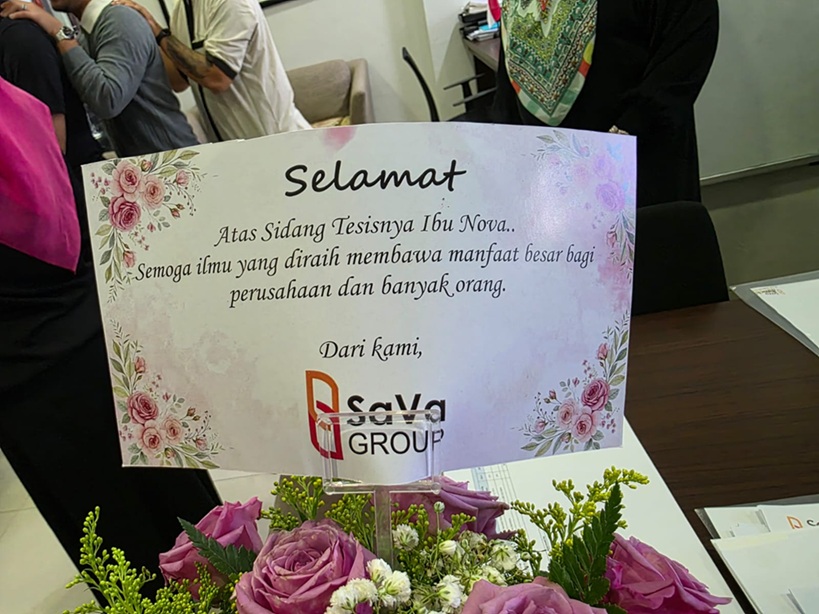 Kabar kelulusan ini disambut meriah oleh seluruh karyawan Sava Group. Tepuk tangan, ucapan selamat, dan rangkaian bunga menjadi simbol apresiasi atas pencapaian akademik yang diraih di tengah kesibukan memimpin dan mengelola perusahaan.